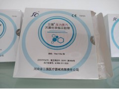 截取適當長度的化學指示膠帶粘貼于待滅菌包裹表面。滅菌完成后,取出包裹并觀察指示膠帶:如果指示膠帶的化學指示劑顏色由黃色變?yōu)楹谏f明滅菌包裹已經(jīng)過滅菌處理;如果指示劑顏色無變化或變色不明顯,則說明包裹未經(jīng)過滅菌處理。